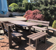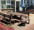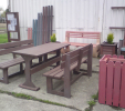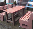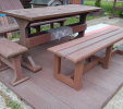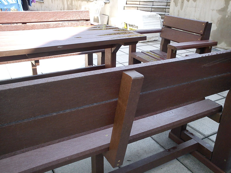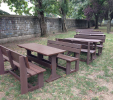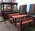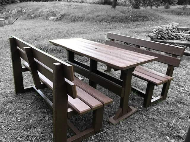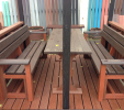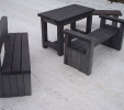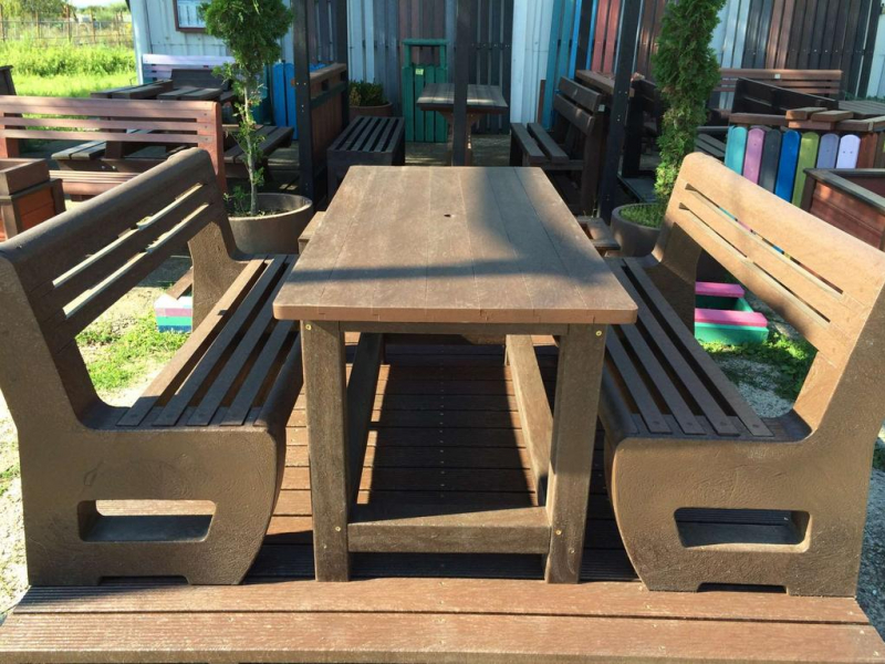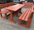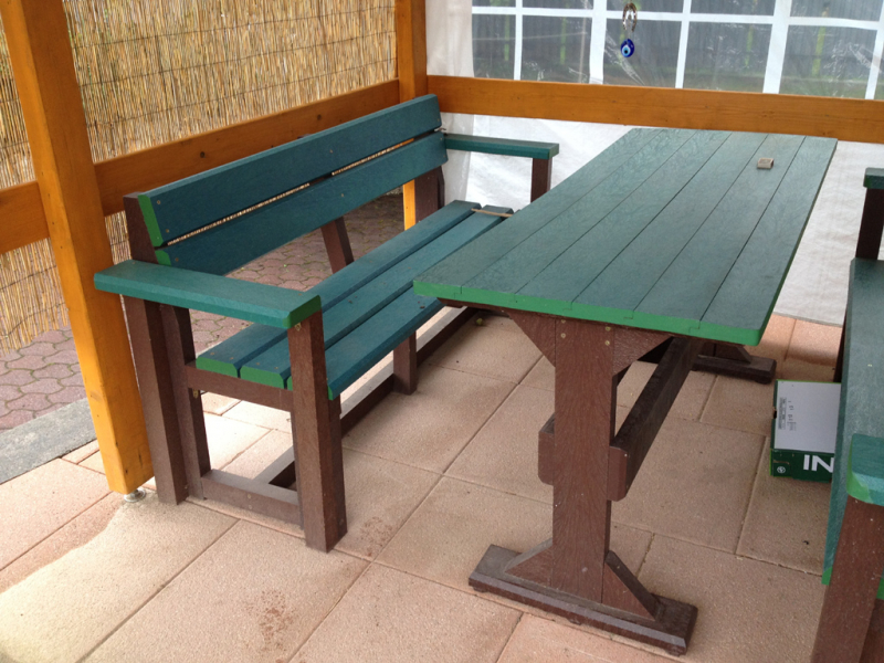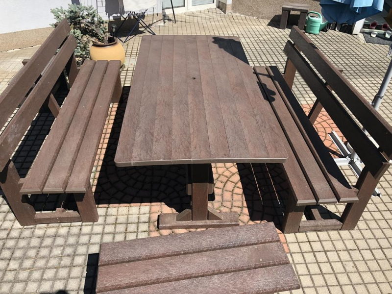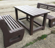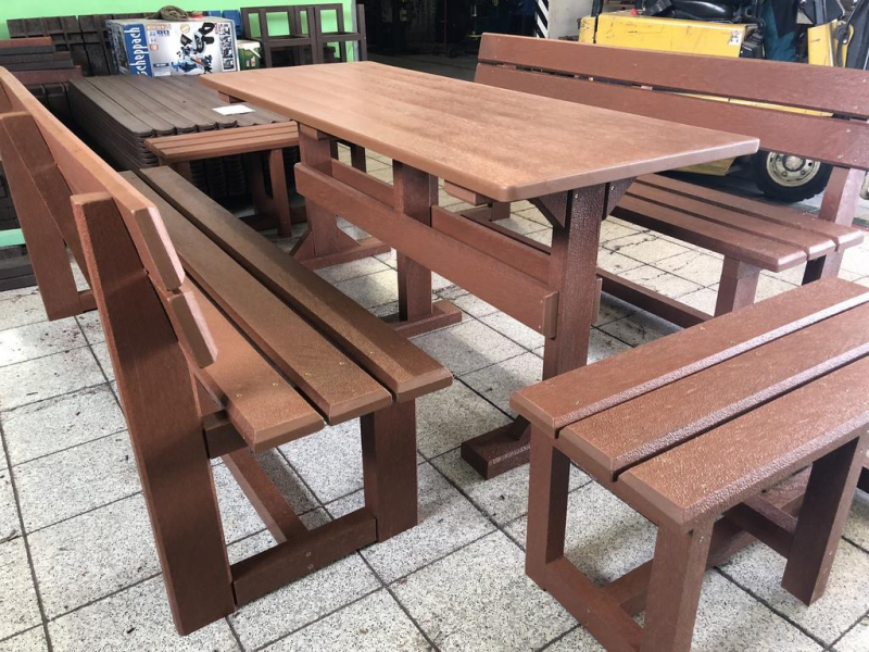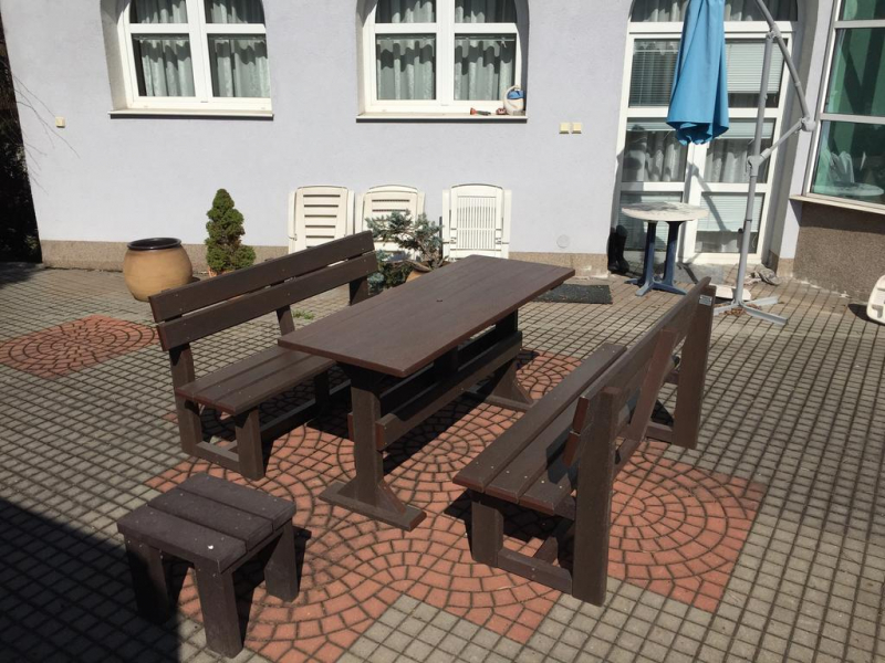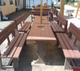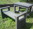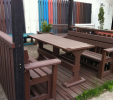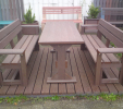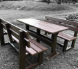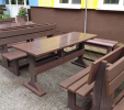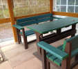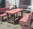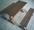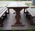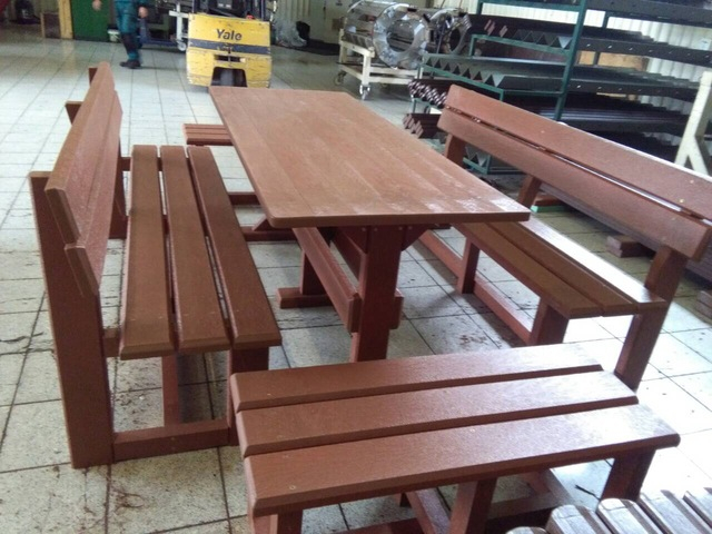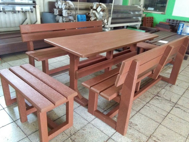 Záhradný nábytok pozostáva z dvoch lavičiek a stola. Materiálovo vieme výrobok pripraviť z plastu aj z dreva. Je možné si zvoliť viacero variánt: napríklad klasický stôl s dvoma "nohami" a dve lavičky s opierkou, alebo masívnejší stôl so štyroma nohami vyrobenými z masívneho hranola 9x9 cm a lavičkami napríkad aj bez opierky. Taktiež vyrábame k sedeniam rôzne iné výrobky akými sú kreslá napríklad aj s lakťovými opierkami, alebo male stolčeky bez opierky a podobne. Ku tomuto produktu je idelálnym riešením napríklad aj podlaha, ktorú dodávame z dvoch - troch typov profilov, napríklad profil D-120x40-2200 / š x h x d / v mm. Je vhodným riešením do nedostupných terénov chát a záhrad, kde by inak boli potrebné aj iné stavebné práce a takouto platňou komplet zhotovenou u nás alebo svojpomocne si môžete ľahko vytvoriť bezúdržbovú terasovú - protišmykovú podlahu, ktorá Vám vydrží dlhé roky. Sekcia 11. Terasové dosky.