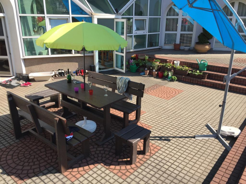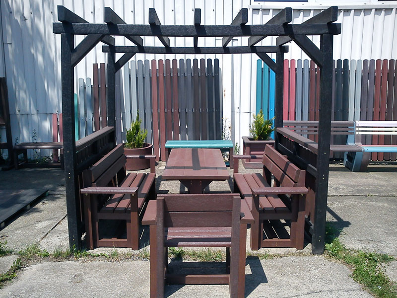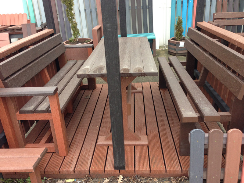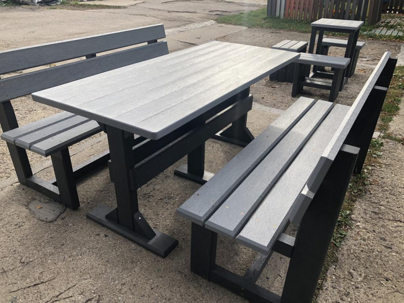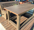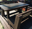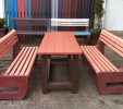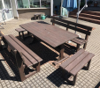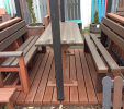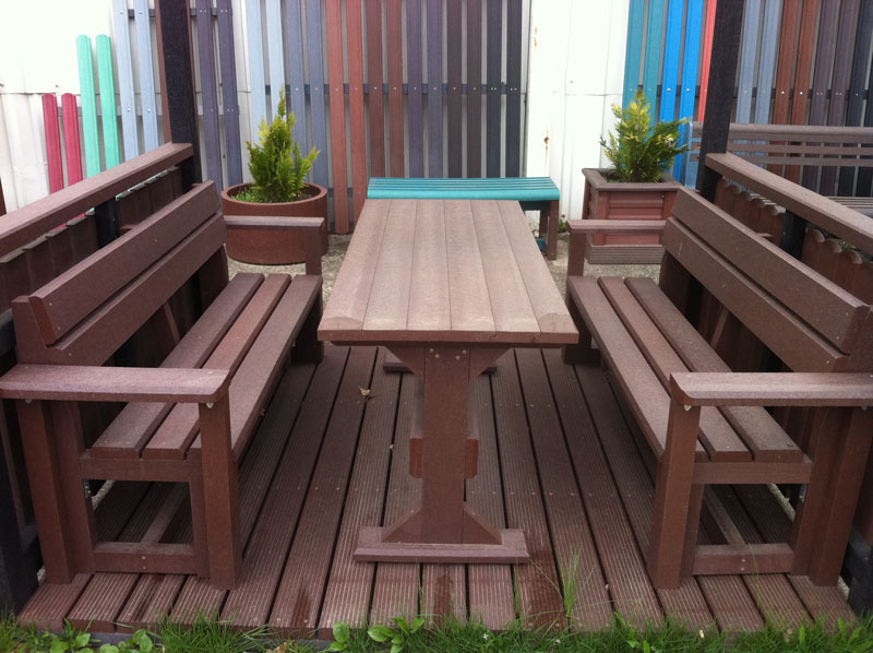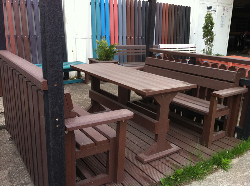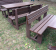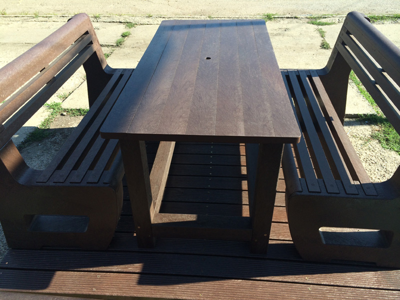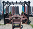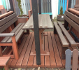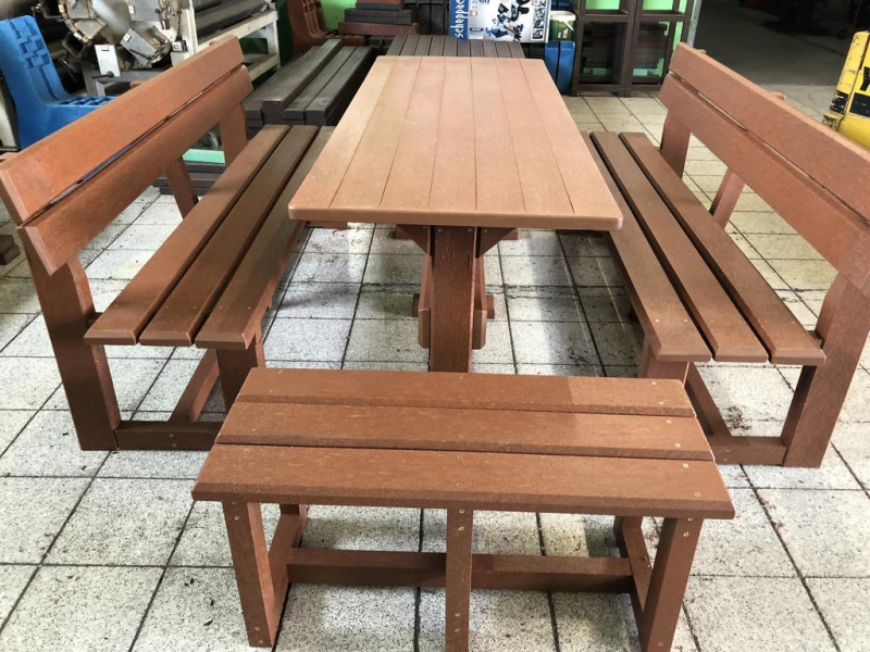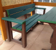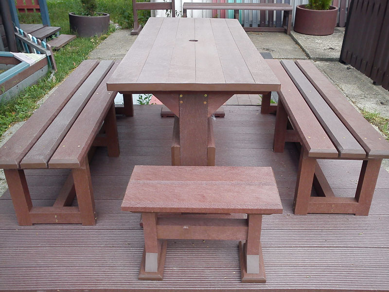 Záhradný nábytok pozostáva z dvoch lavičiek a stola. Materiálovo vieme výrobok pripraviť z plastu aj z dreva. Je možné si zvoliť viacero variánt: napríklad klasický stôl s dvoma "nohami" a dve lavičky s opierkou, alebo masívnejší stôl so štyroma nohami vyrobenými z masívneho hranola 9x9 cm a lavičkami napríkad aj bez opierky. Taktiež vyrábame k sedeniam rôzne iné výrobky akými sú kreslá napríklad aj s lakťovými opierkami, alebo male stolčeky bez opierky a podobne. Ku tomuto produktu je idelálnym riešením napríklad aj podlaha, ktorú dodávame z dvoch - troch typov profilov, napríklad profil D-120x40-2200 / š x h x d / v mm. Je vhodným riešením do nedostupných terénov chát a záhrad, kde by inak boli potrebné aj iné stavebné práce a takouto platňou komplet zhotovenou u nás alebo svojpomocne si môžete ľahko vytvoriť bezúdržbovú terasovú - protišmykovú podlahu, ktorá Vám vydrží dlhé roky. Sekcia 11. Terasové dosky.
