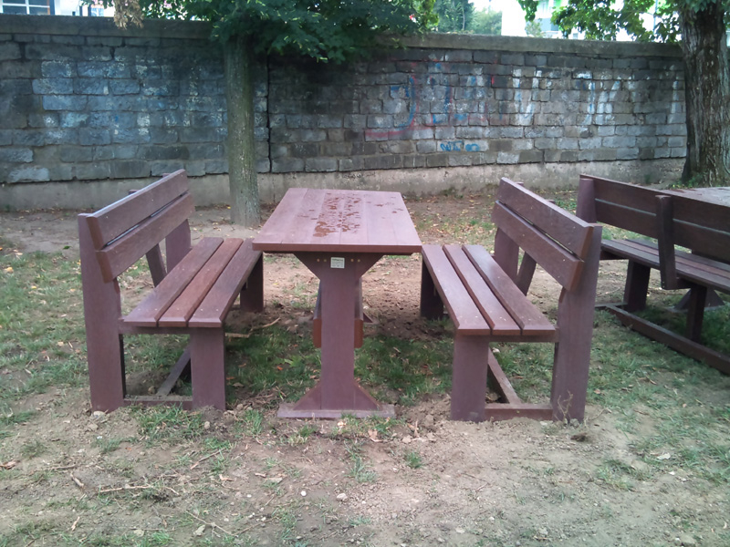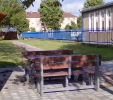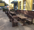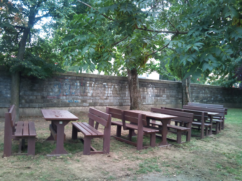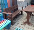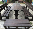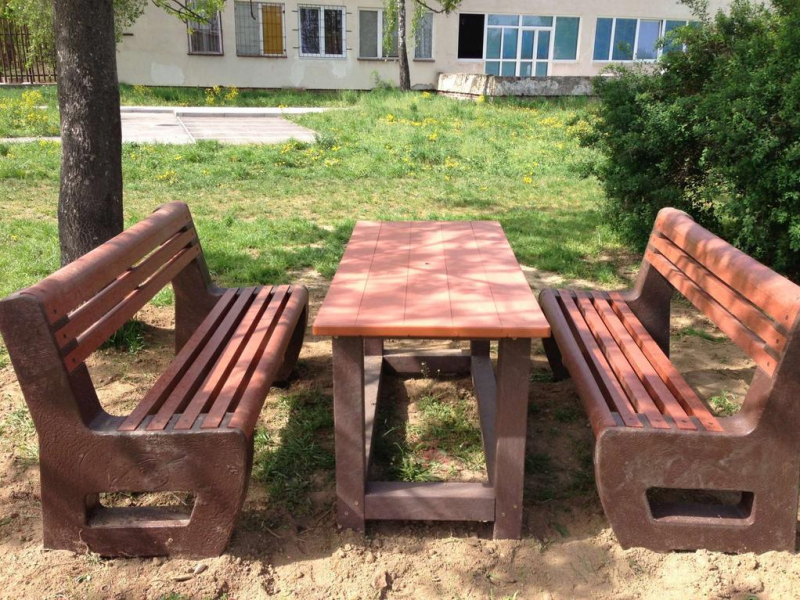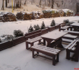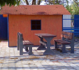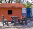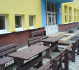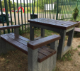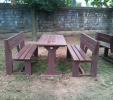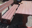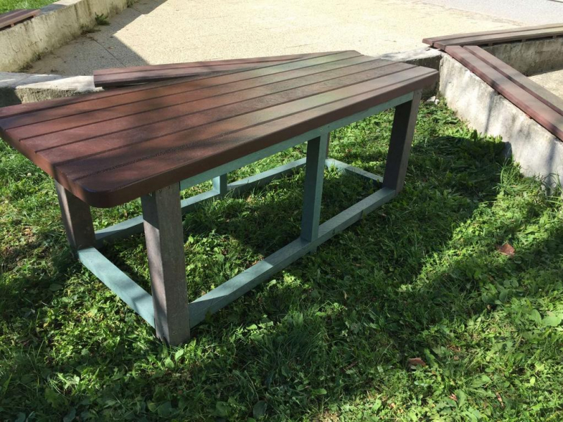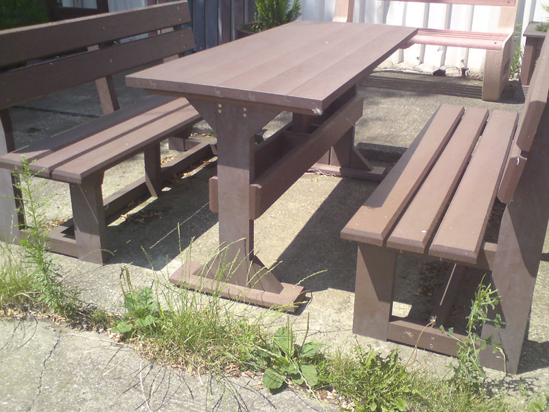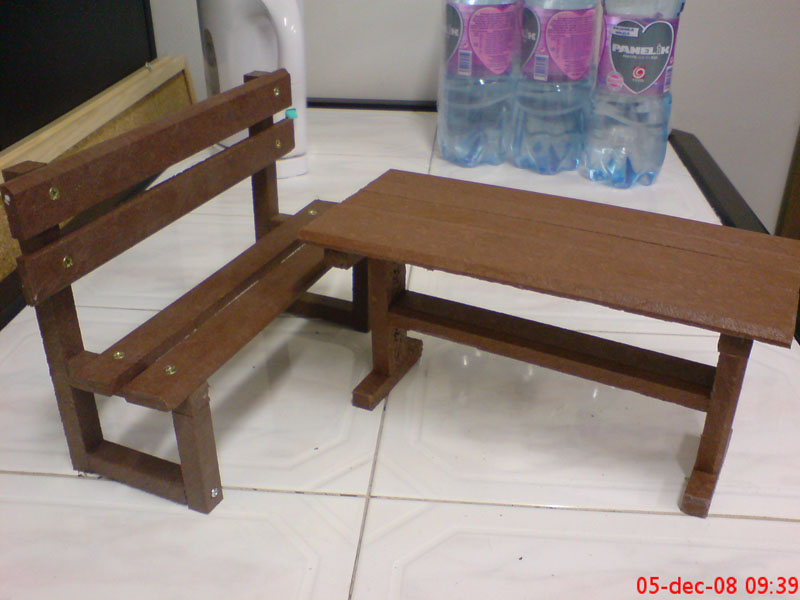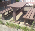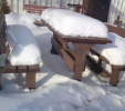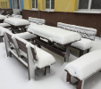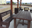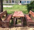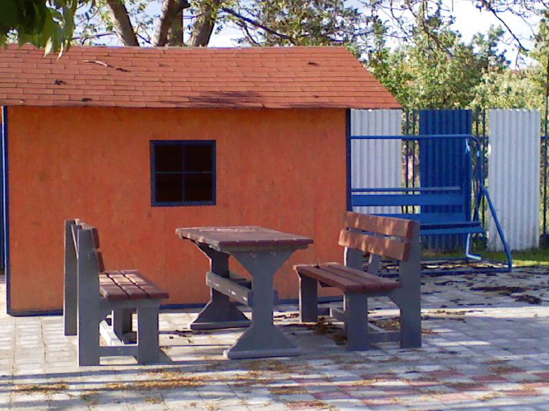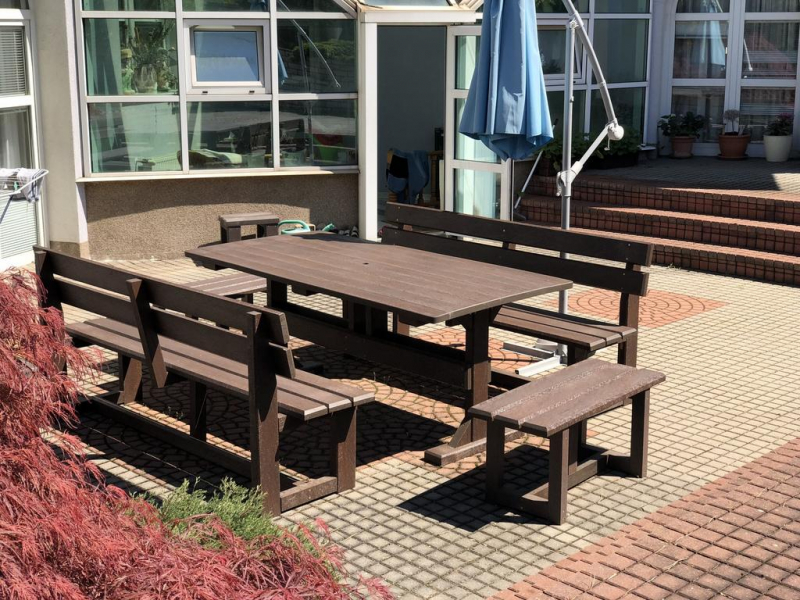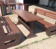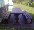 d) Záhradný nábytok 1 stôl a 2 lavičky