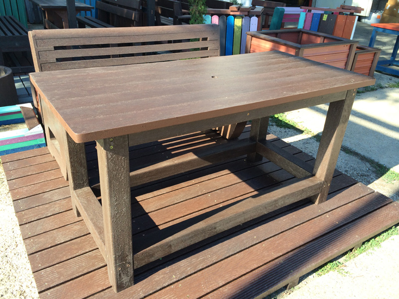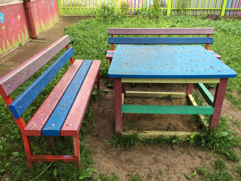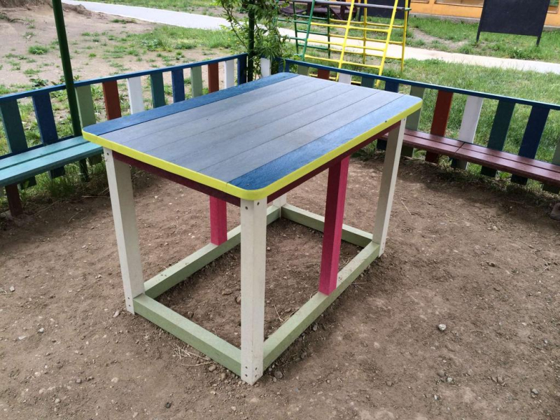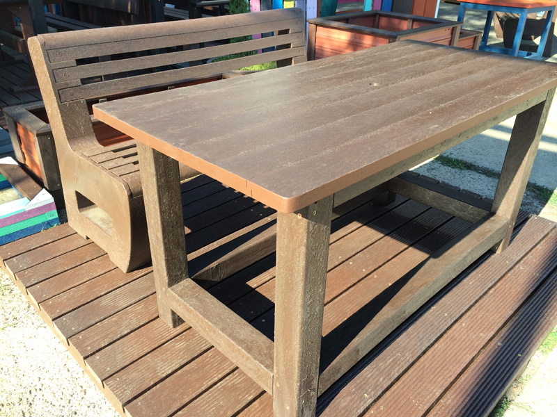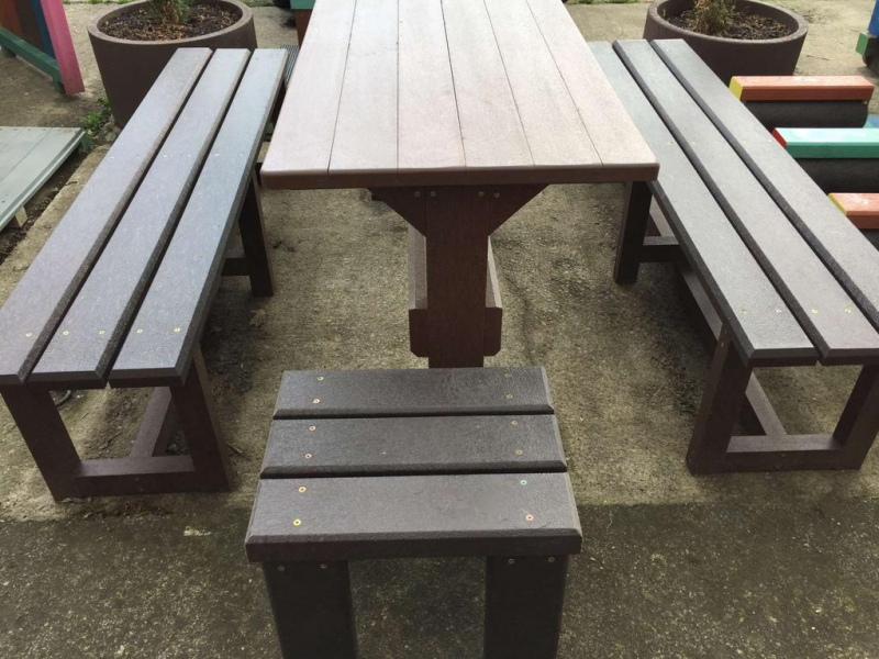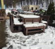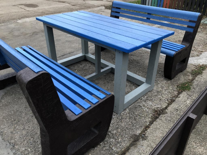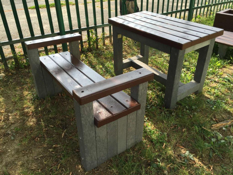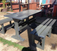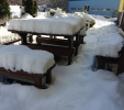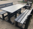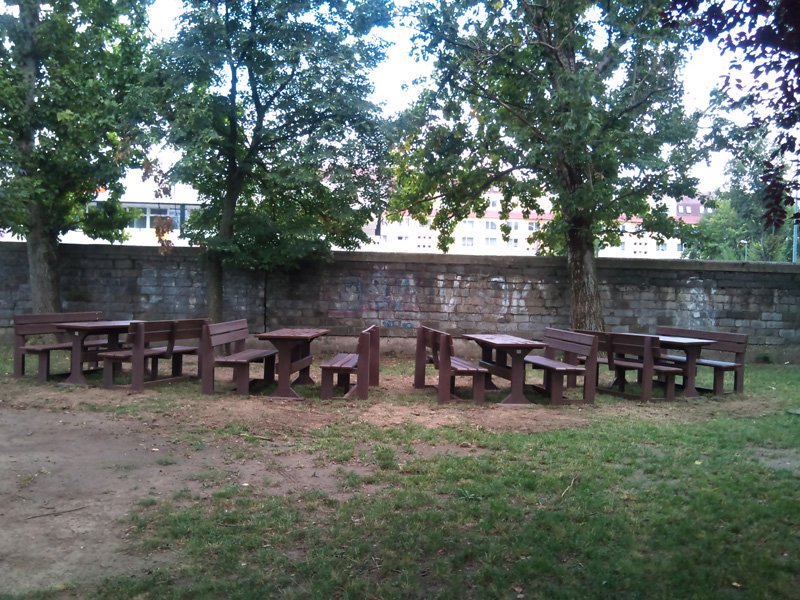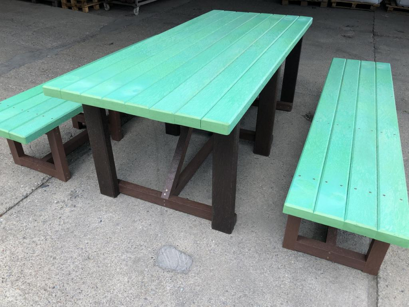 d) Záhradný nábytok 1 stôl a 2 lavičky