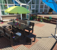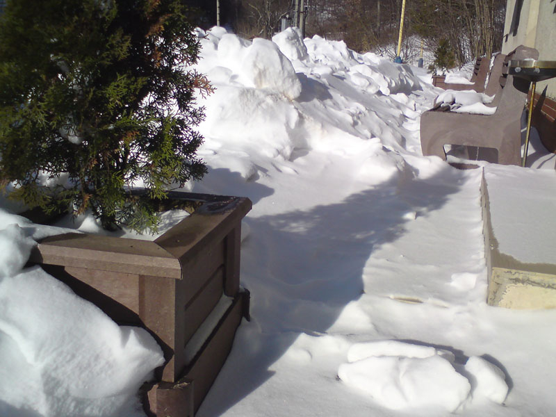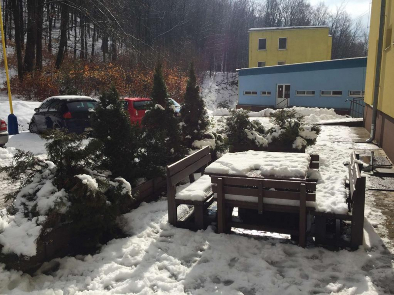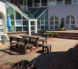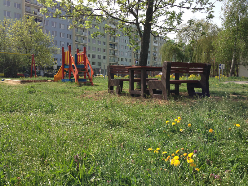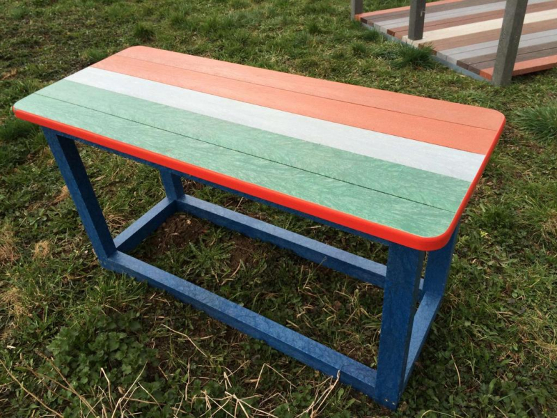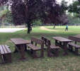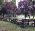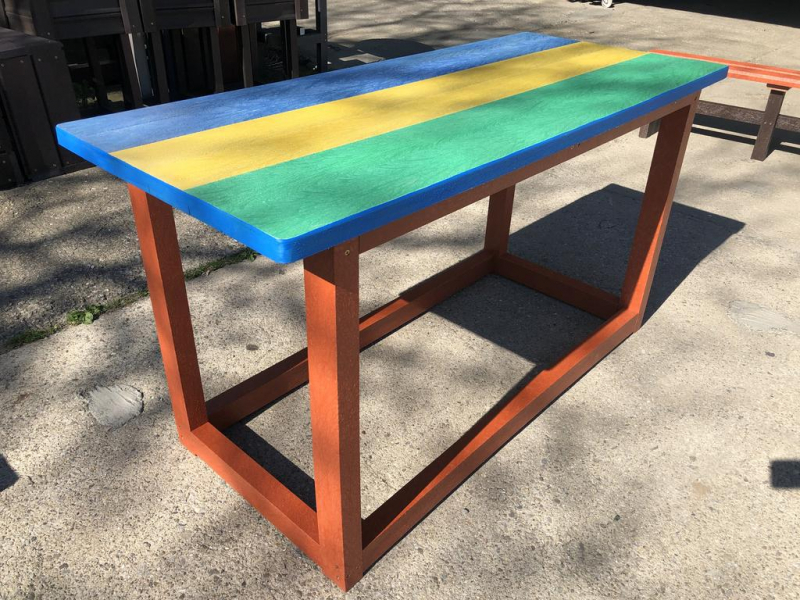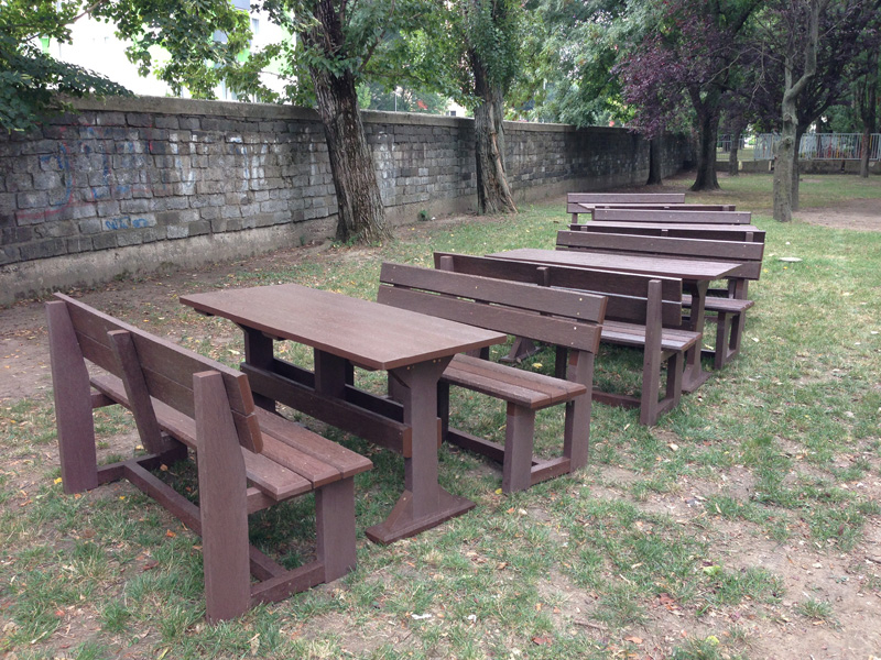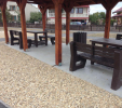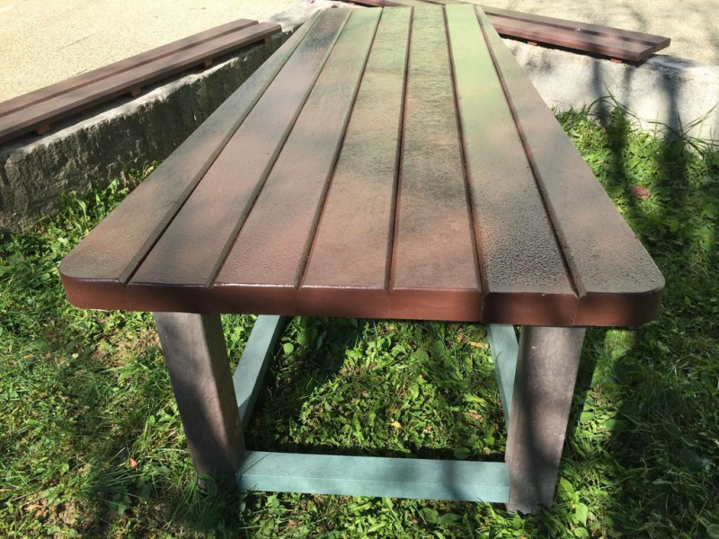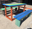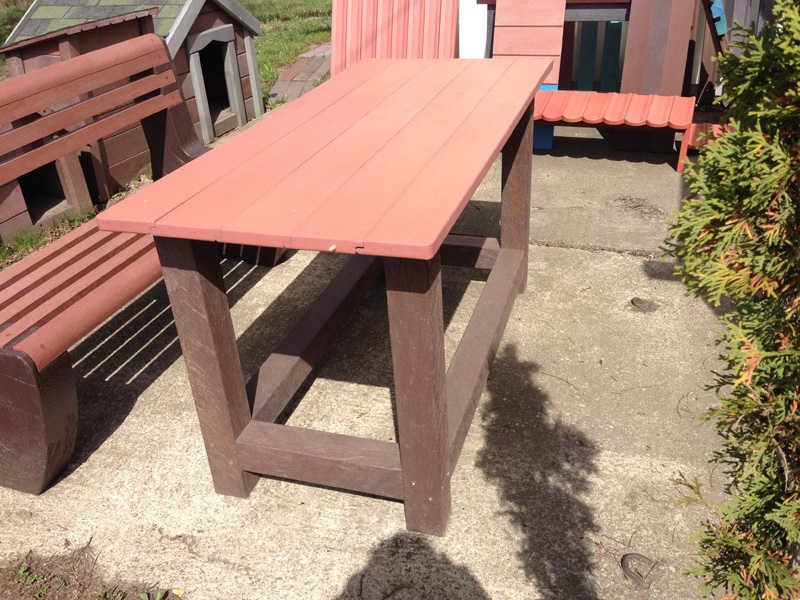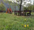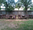 d) Záhradný nábytok 1 stôl a 2 lavičky