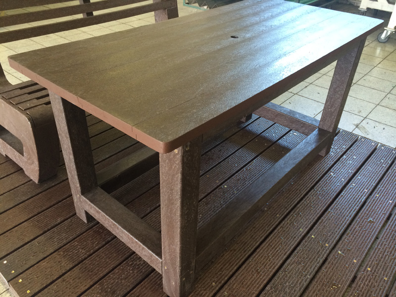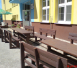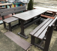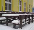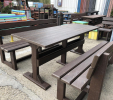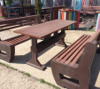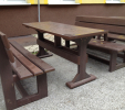02g stôl klasický s 2 lavičkami s opierkou, dĺžka 160 cm, farba hnedá, cena 558,33 € bez DPH ( 670,00 € s DPH)